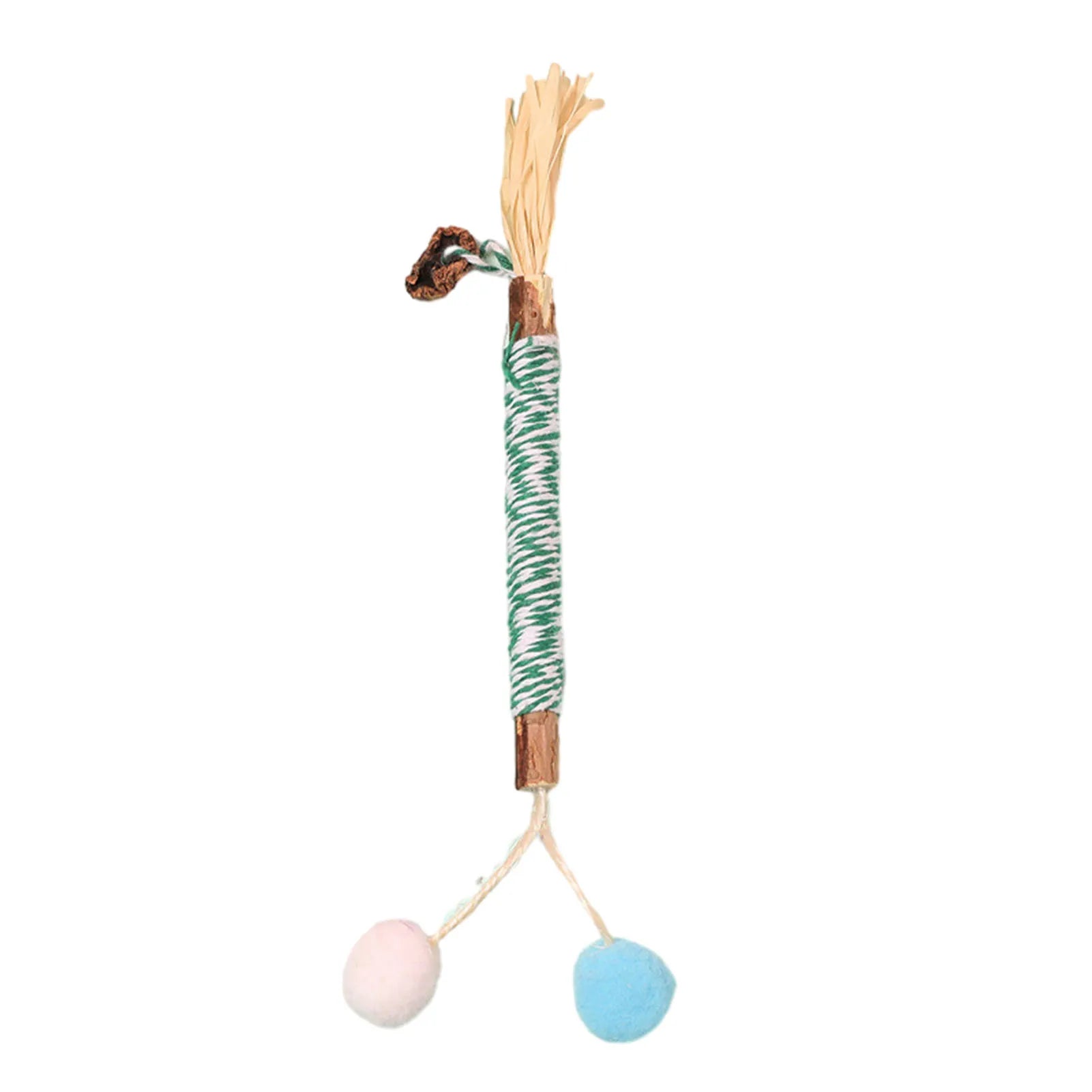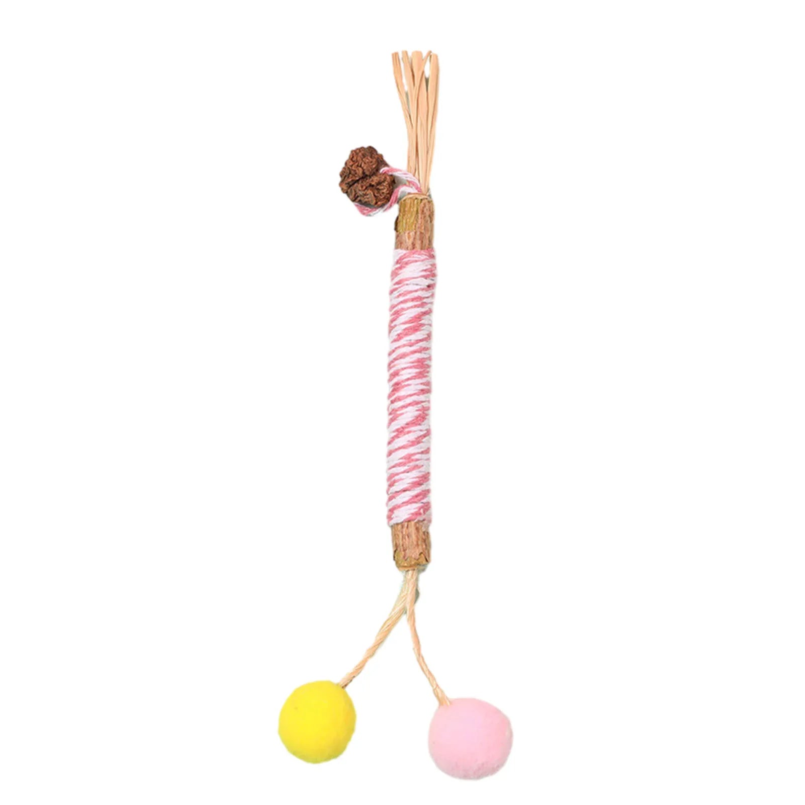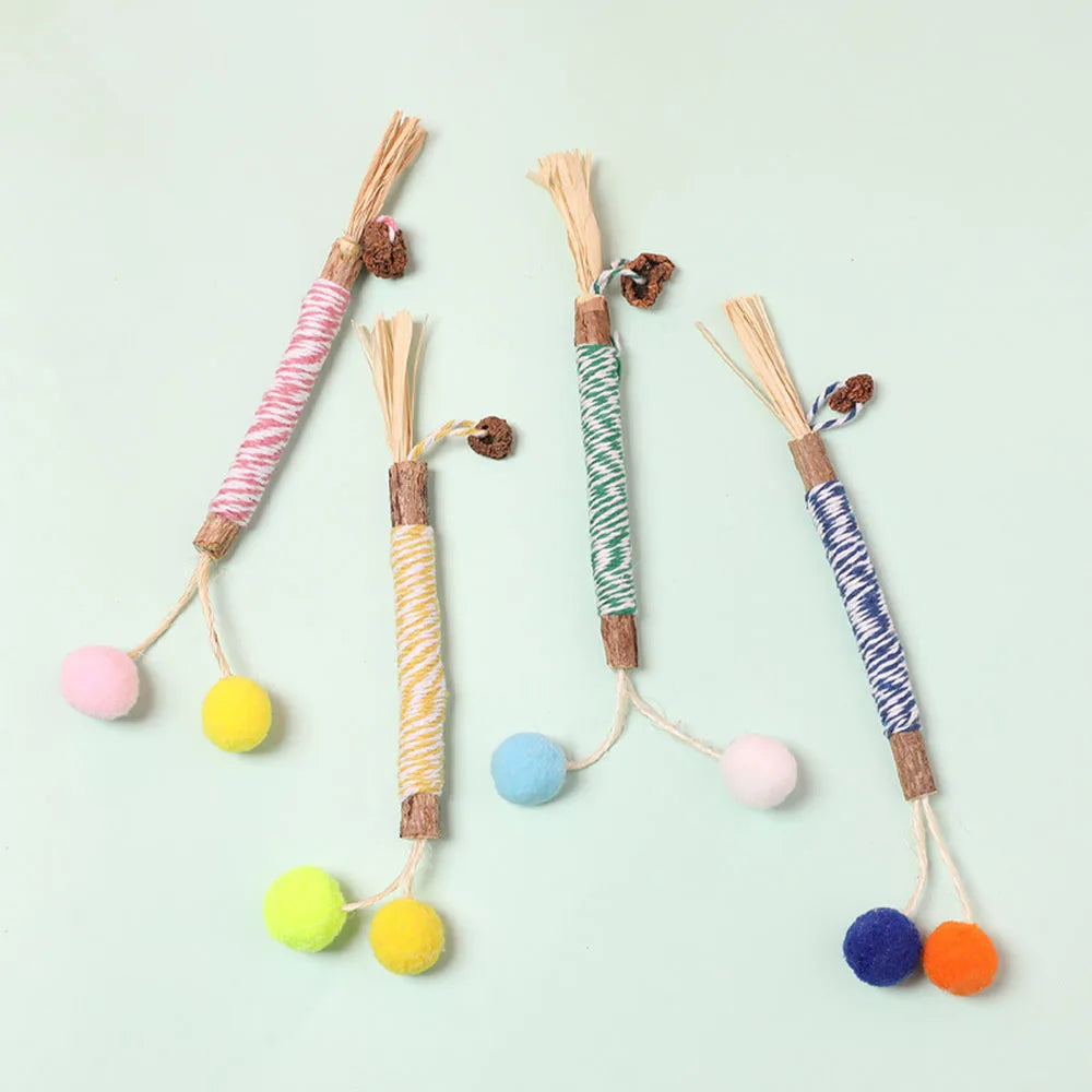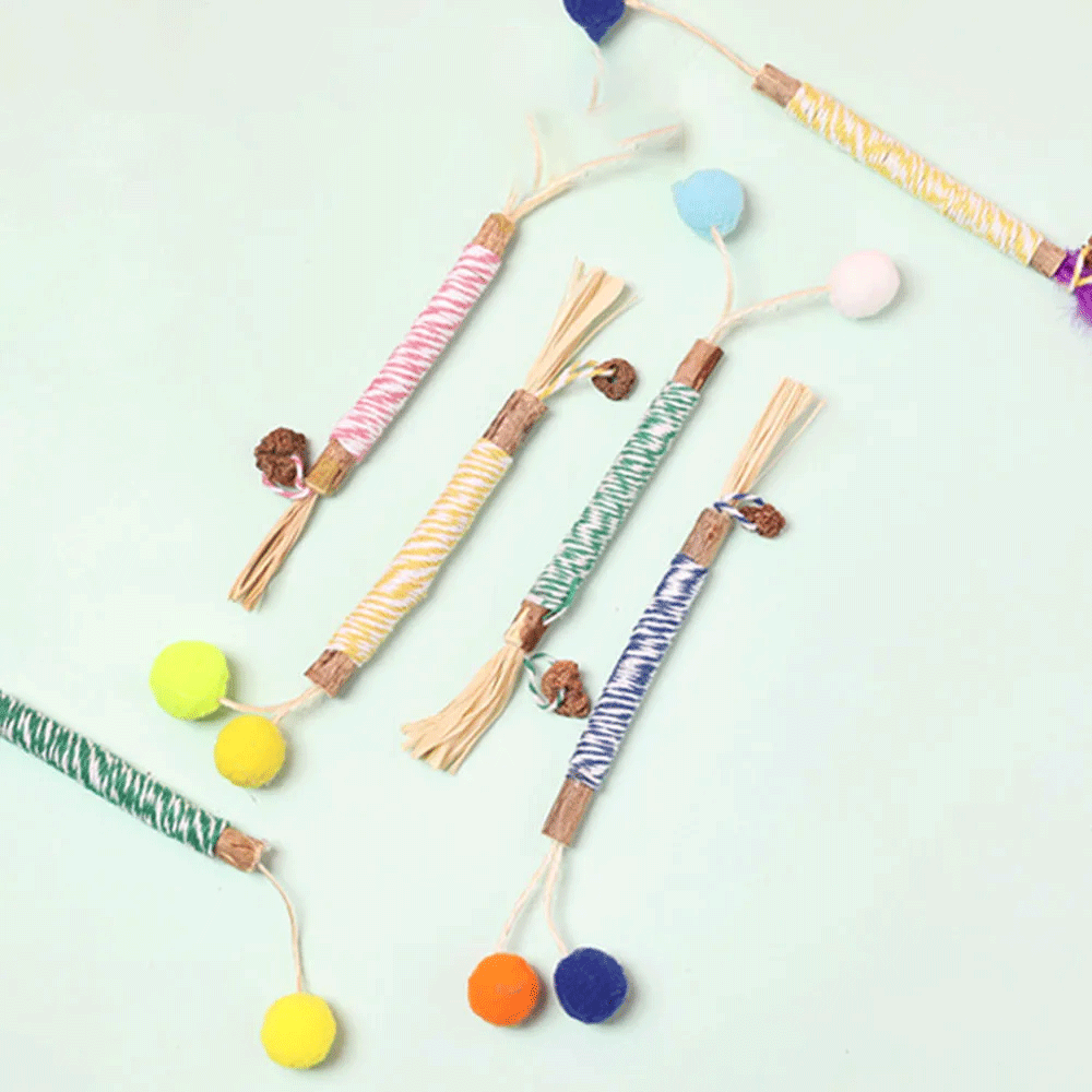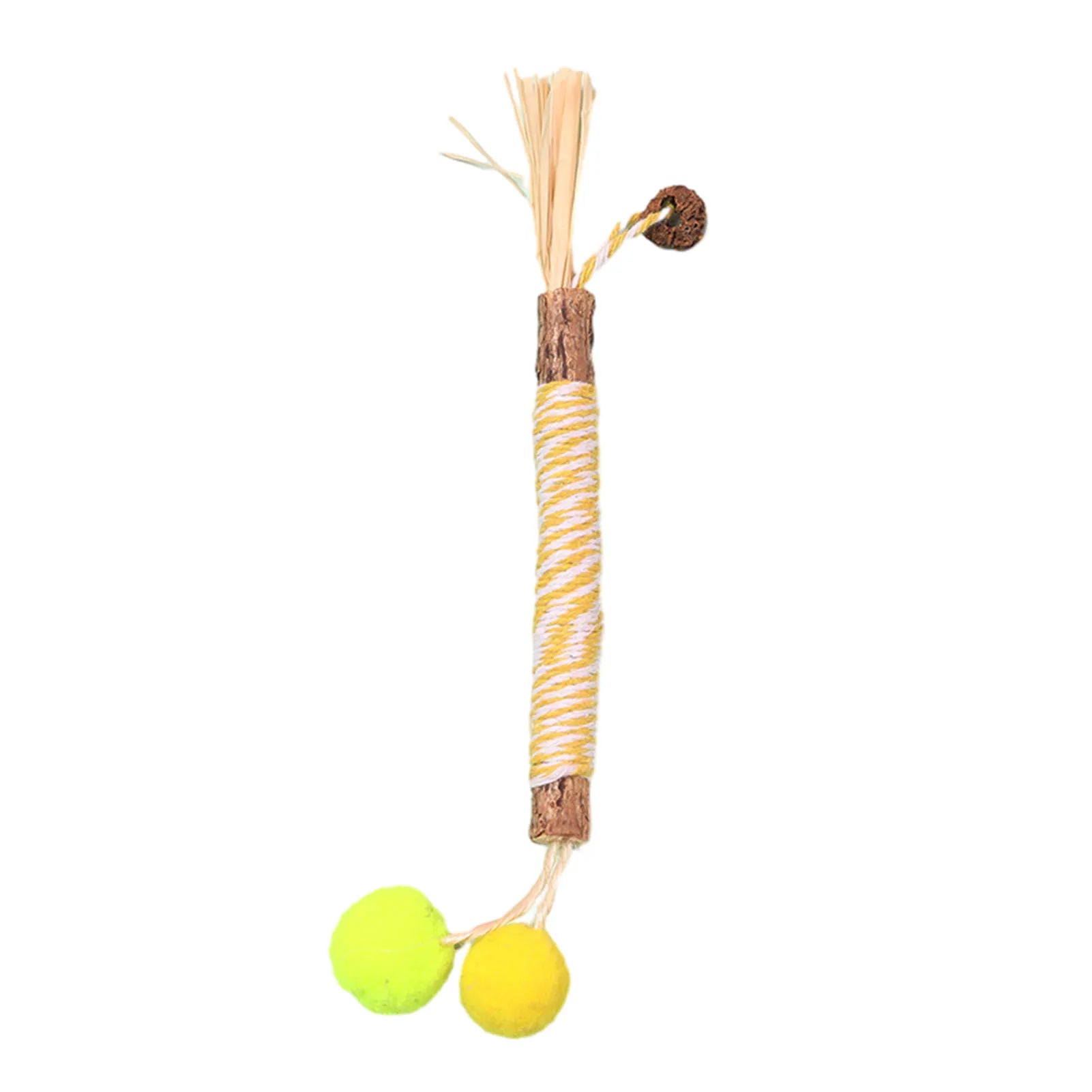 Keep your cat playful and healthy with this natural wooden polygon um stick toy. Wrapped with Lafitte grass and durable hemp rope, it helps clean your kitten’s teeth, reduces boredom, and provides safe chewing fun. Perfect for molar care and interactive play.