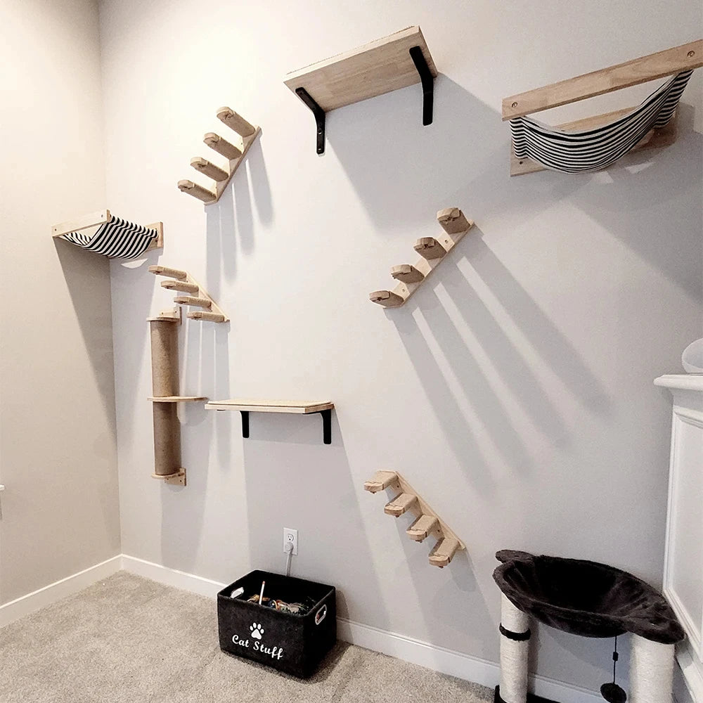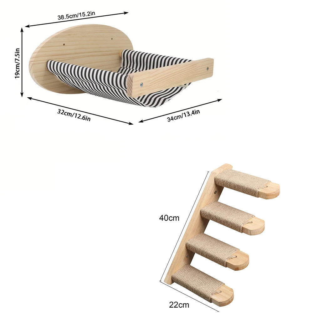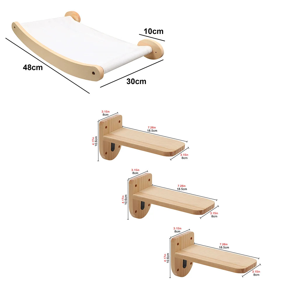 Wall-Mounted Cat Climbing Shelf with Hammock & Scratching Post