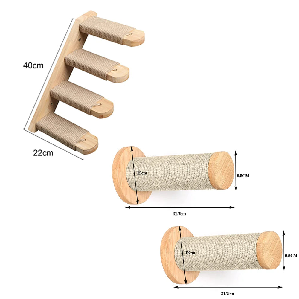 Turn your wall into a cat paradise with this stylish and functional wall-mounted cat climbing shelf. Designed with 4 sturdy steps, a cozy hammock, and a sisal scratching post, it provides your feline friend with everything they need for climbing, playing, resting, and claw care.